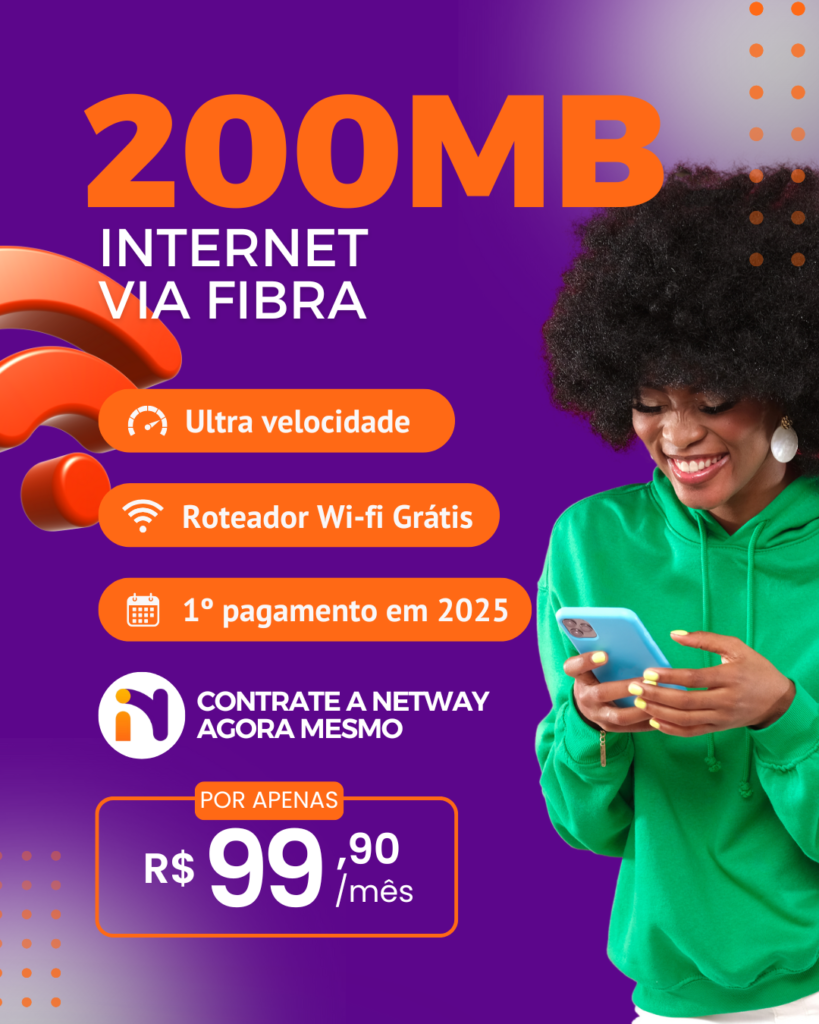 Com a Netway, você recebe Wi-Fi grátis, primeira mensalidade só em 2025, e suporte especializado. Nossa internet é ideal para quem valoriza qualidade, rapidez e uma experiência sem preocupações.